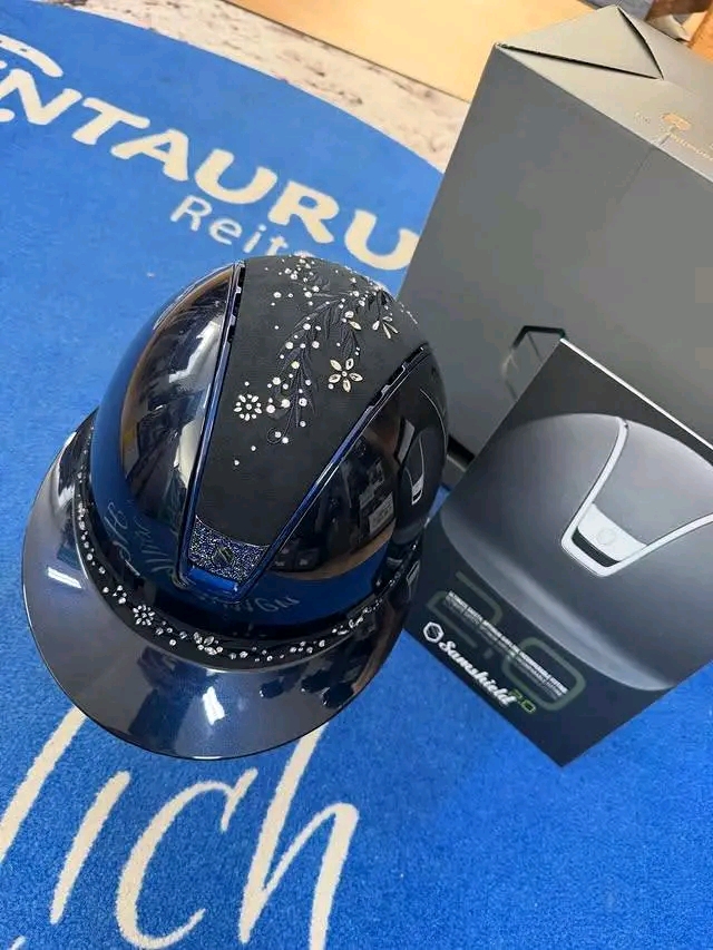 casque Samshield modèle MissShield, avec finition élégante Swarovski Flower bleu.
