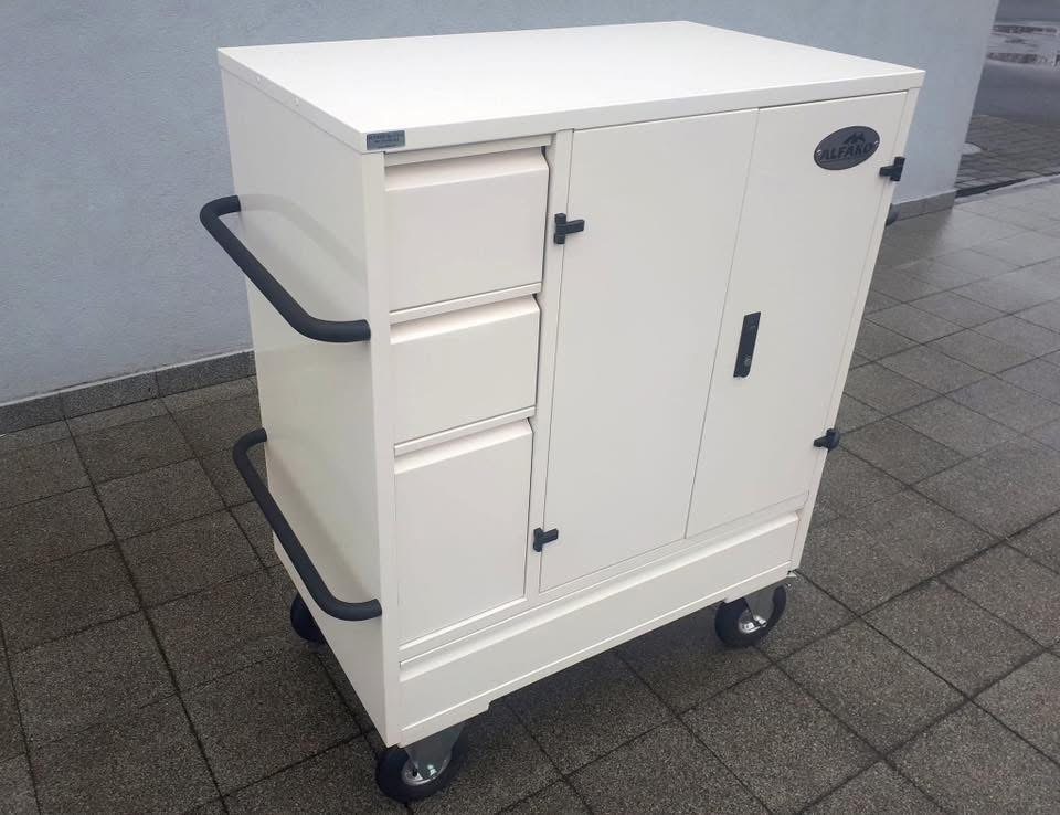 La malle professionnelle Alfako est votre solution idéale pour transporter et organiser efficacement tout type de matériel. Fabriquée en métal robuste, elle offre un système de verrouillage sécurisé et une mobilité exceptionnelle grâce à ses roulettes, dont deux pivotantes. Son état impeccable et son design polyvalent la rendent parfaitement fonctionnelle et prête à l’emploi.