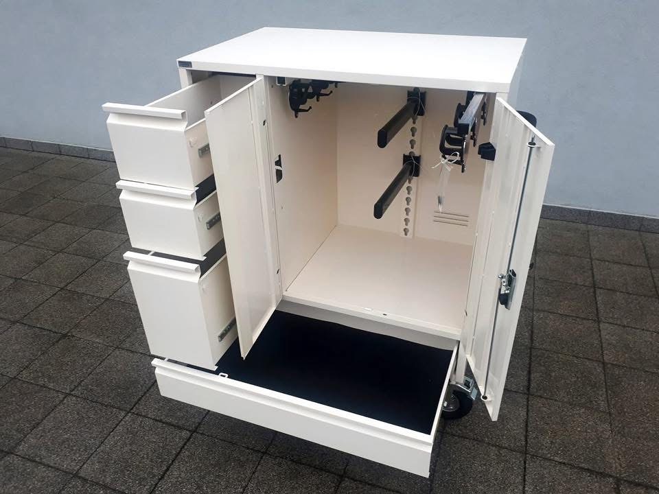 Simplifiez vos déplacements professionnels grâce à son grand compartiment central modulable avec des supports ajustables pour sécuriser vos équipements. En complément, elle intègre trois tiroirs latéraux pratiques et une porte principale sécurisée. Chaque détail est pensé pour maximiser l’espace et protéger votre matériel, qu’il soit technique, médical ou événementiel.